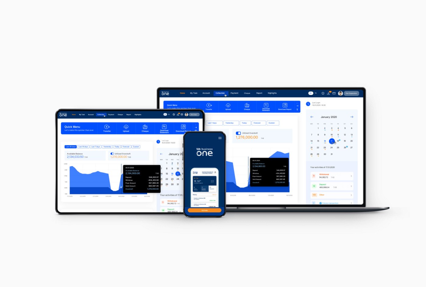 - 4. โอนเงินฟรี ไม่มีค่าธรรมเนียม ไม่ต้องไปสาขา เมื่อใช้ ทีทีบี บิสสิเนสวัน (ttb business one) คู่กับบัญชีธุรกิจ ttb sme one bank ทั้งโอนจ่ายคู่ค้า ค่าสาธารณูปโภค หรือโอนจ่ายเงินเดือนพนักงาน