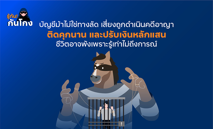 “บัญชีม้า” คือ บัตรผ่านประตูสู่เรือนจำที่มิจฉาชีพยื่นให้โดยที่คุณไม่รู้ตัว การ “รู้ทัน กันโกง” จึงเป็นสิ่งสำคัญที่จะช่วยให้ไม่ตกเป็นเหยื่อ