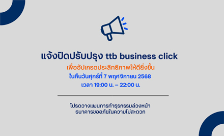 ttb business click ปิดปรับปรุงและอัพเดทระบบชั่วคราว