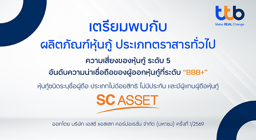 ทีเอ็มบีธนชาต หรือ ทีทีบี เป็นตัวแทนจัดจำหน่ายหุ้นกู้ ประเภทตราสารทั่วไป ออกโดย บริษัท เอสซี แอสเสท คอร์ปอเรชั่น จำกัด (มหาชน) ซึ่งเป็นบริษัทพัฒนาอสังหาริมทรัพย์ชั้นนำแบบครบวงจร ทั้งโครงการพักอาศัยแนวราบแบบบ้านเดี่ยว โครงการแนวสูงแบบคอนโดมิเนียม และ ธุรกิจให้เช่าอาคารสำนักงาน