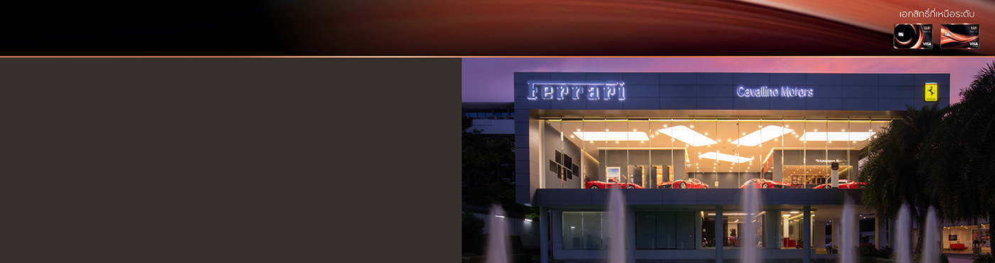 - ผู้ถือบัตรต้องทำรายการหรือชำระค่าจองรถเพื่อลงทะเบียนรับสิทธิ์ที่โชว์รูม Cavallino Motors เท่านั้น