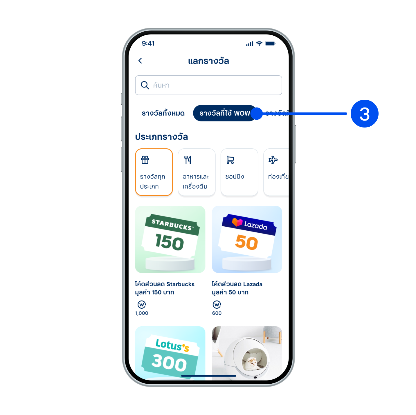 3. เลือก “รางวัลที่ใช้ WOW” จากนั้นเลือกรางวัลที่ต้องการ