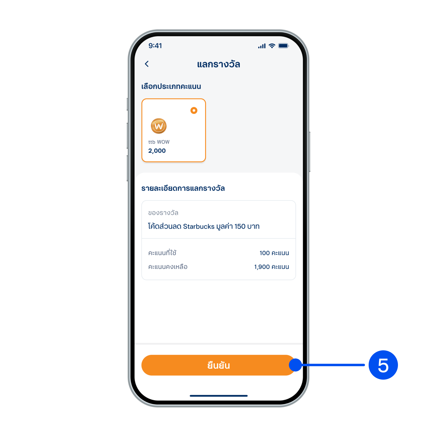 5. ตรวจสอบรายละเอียดการแลกรางวัล จากนั้นเลือก “ยืนยัน”